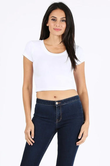 Basic solid short sleeve stretch crop top